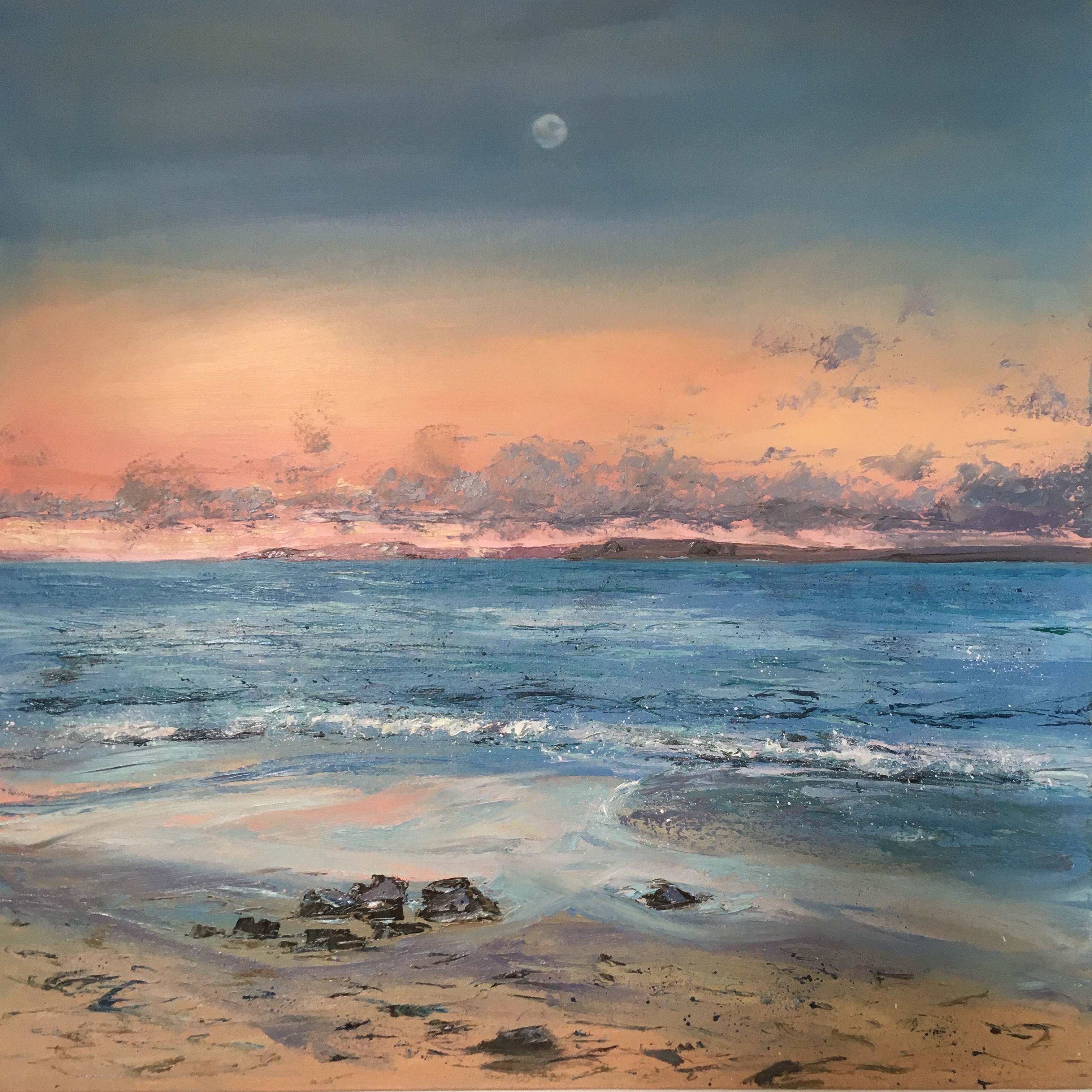 Moon over Portgwidden Beach, 61cm square